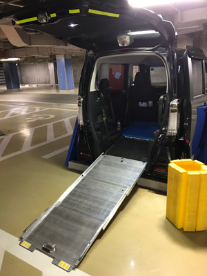 通常の軽貨物車(軽トラックやバン)では積載が困難なキャスター付き医療機器に関しましても、特殊な構造変更を施したN-Boxのスロープ仕様車にて対応しております。